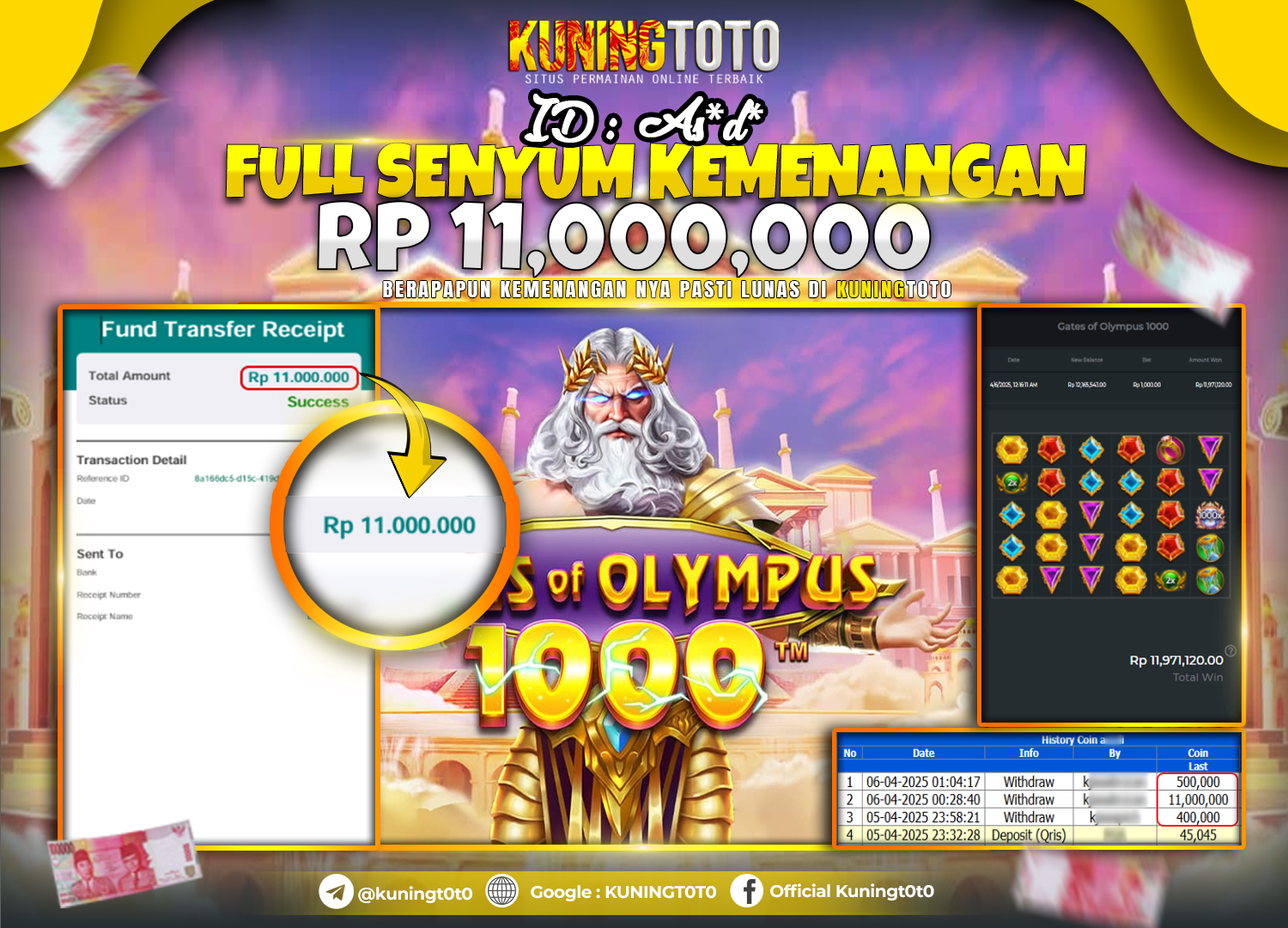 Bukti Kemenangan Slot KuningToto 06 April 2025 Slot Gates Of Olympus 1000