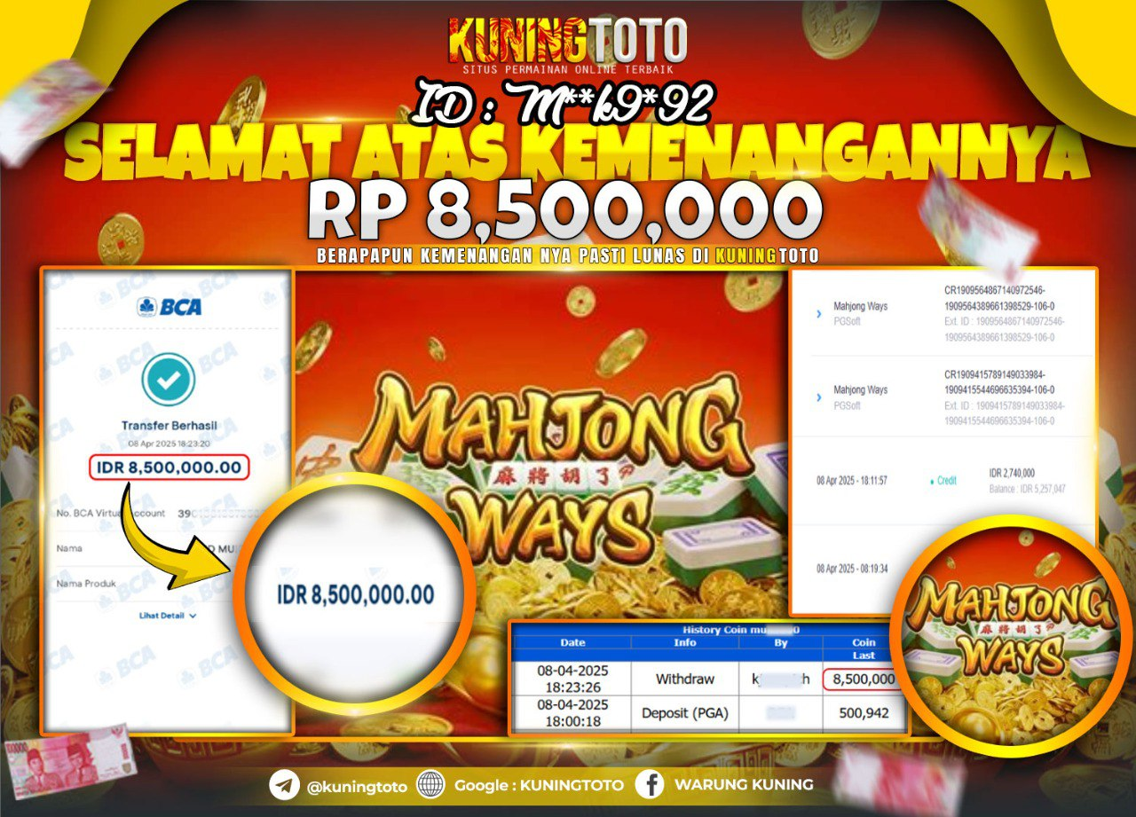 Bukti JackPot Slot Member KUNINGTOTO 08 April 2025 Slot Mahjong Ways