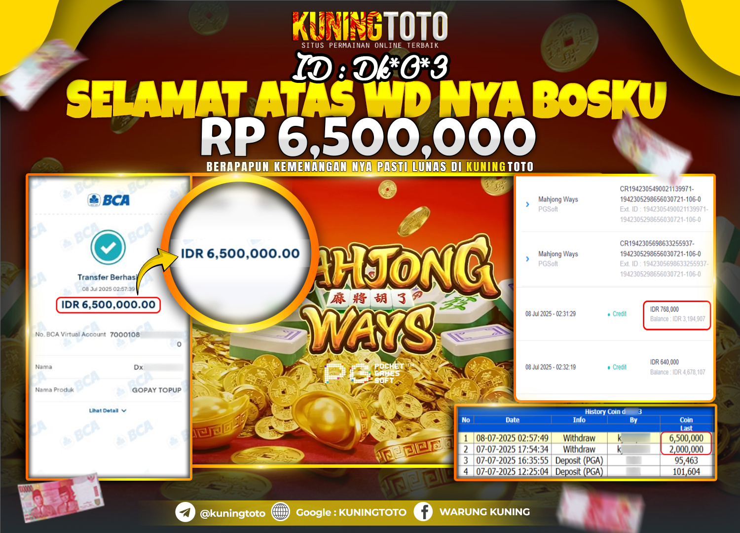 Bukti Kemenangan Slot KuningToto 08 Juli 2025 Slot Mahjong Ways