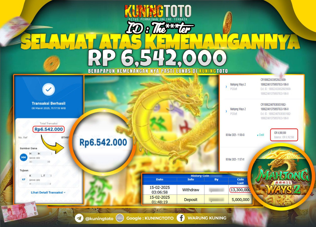 Bukti Kemenangan Slot KuningToto 08 Mar 2025 Mahjong Ways 2