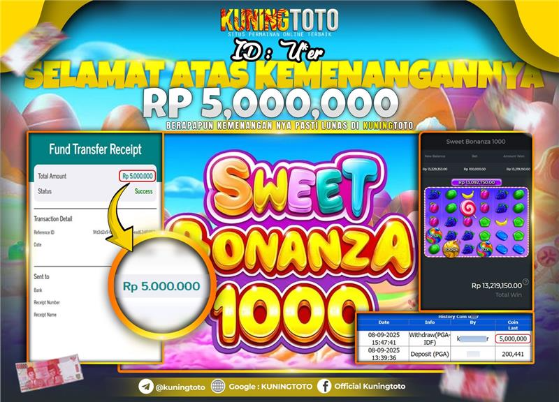 Bukti Kemenangan Slot KuningToto 08 September 2025 Slot Sweet Bonanza 1000