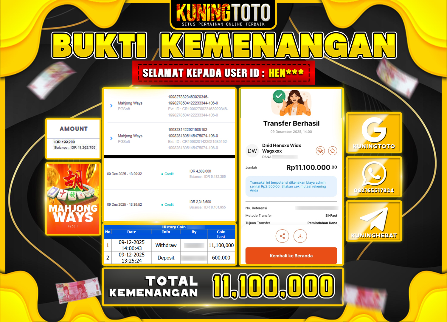 Bukti JackPot Slot Member KUNINGTOTO 09 Desember 2025 Slot Mahjong Ways
