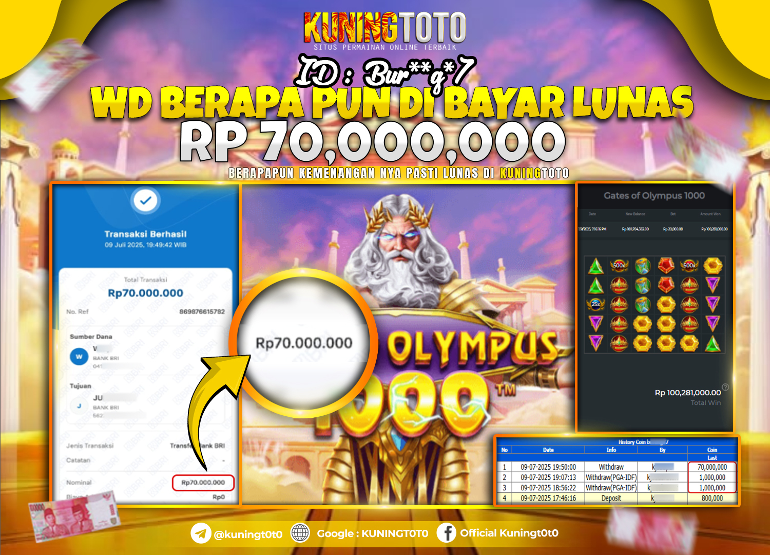 Bukti JackPot Slot Member KUNINGTOTO 09 Juli 2025 Slot Gates of Olympus 1000