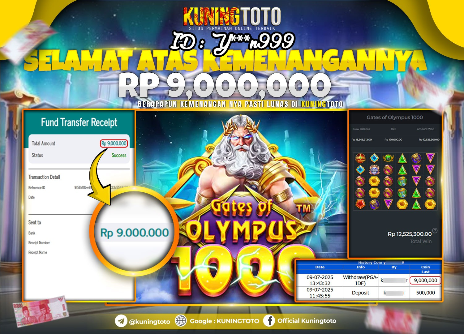 Bukti Kemenangan Slot KuningToto 09 Juli 2025 Slot Gates of Olympus 1000