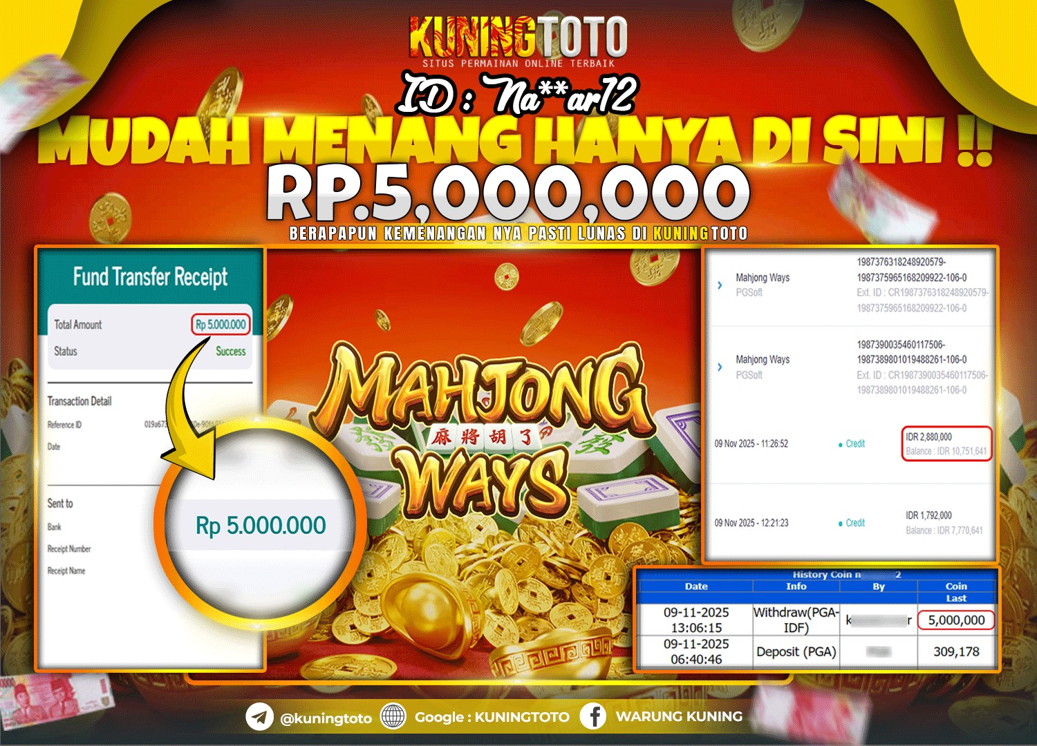 Bukti JackPot Slot Member KUNINGTOTO 09 November 2025 Slot Mahjong Ways