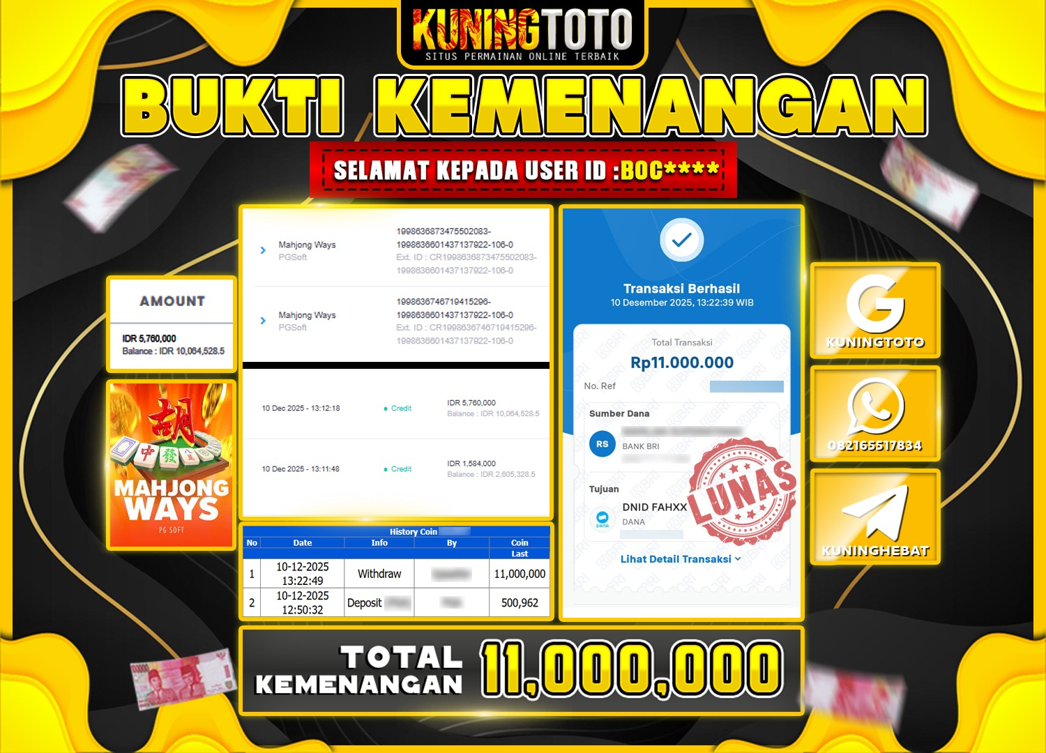 Bukti JackPot Slot Member KUNINGTOTO 10 Desember 2025 Slot Mahjong Ways