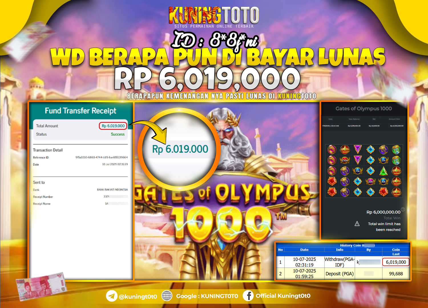 Bukti JackPot Slot Member KUNINGTOTO 10 Juli 2025 Slot Gates Of Olympus 1000