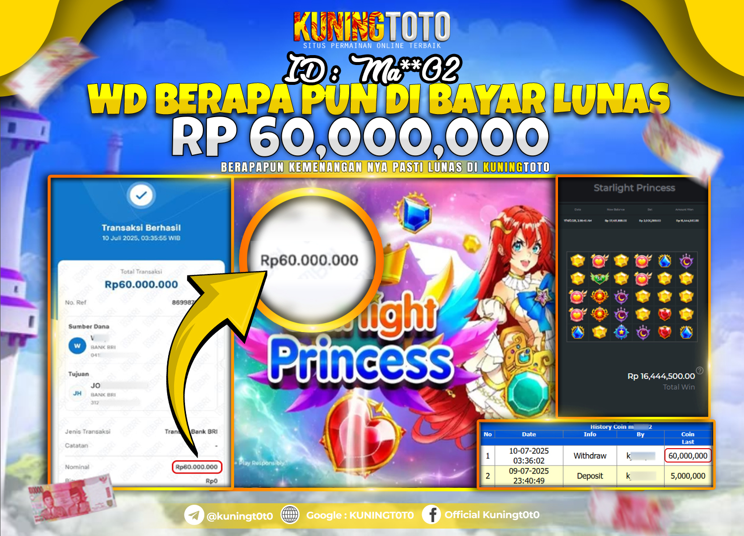 Bukti Kemenangan Slot KuningToto 10 Juli 2025 Slot Starlight Princess