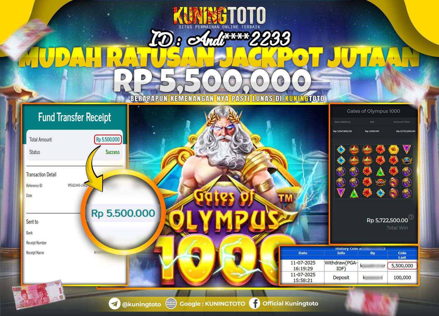 Bukti JackPot Slot Member KUNINGTOTO 11 Juli 2025 Slot Gates of Olympus 1000