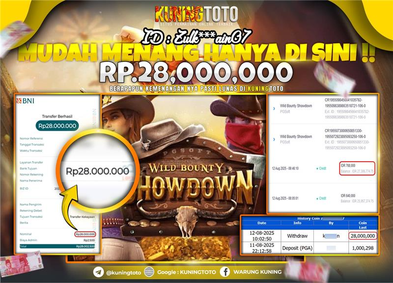 Bukti Kemenangan Slot KuningToto 12 Agustus 2025 Slot Wild Bounty Showdown