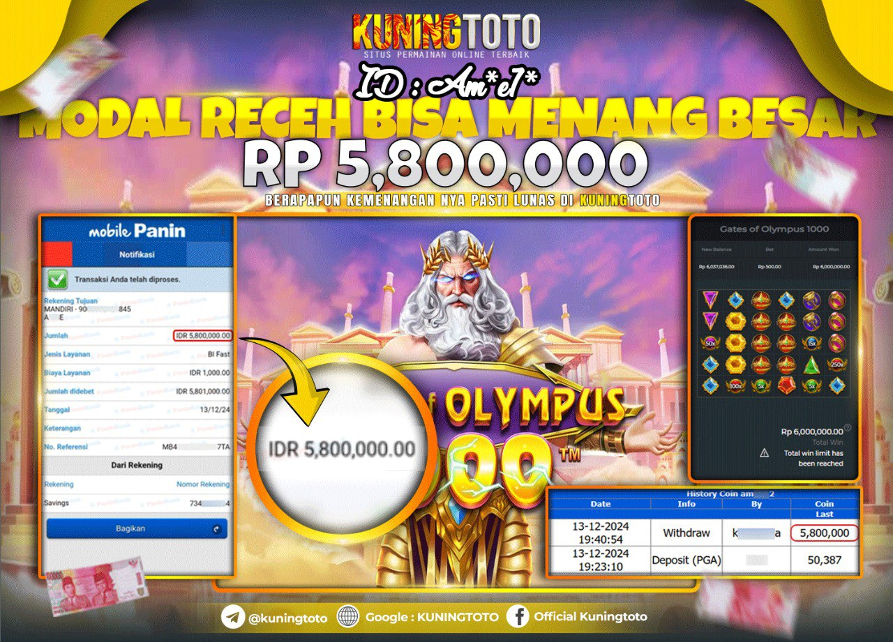 Bukti JackPot Slot Member KUNINGTOTO 13 Dec 2024 Slot Gates Of Olympus 1000