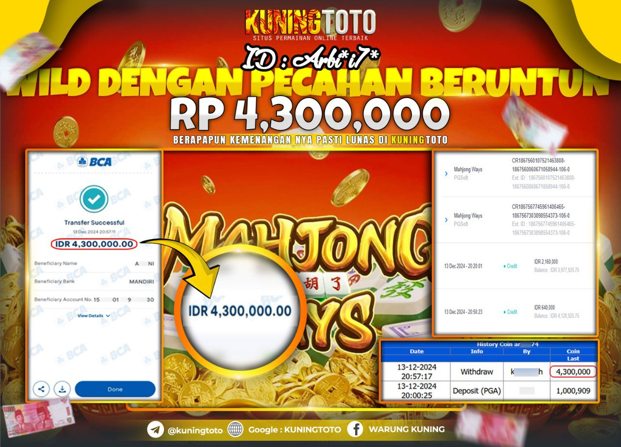 Bukti JackPot Slot Member KUNINGTOTO 13 Dec 2024 Slot Mahjong Ways