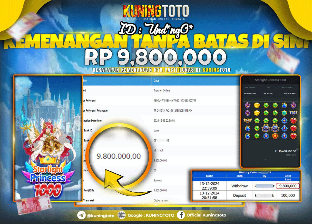 Bukti JackPot Slot Member KUNINGTOTO 13 Dec 2024 Slot Starlight Princess 100