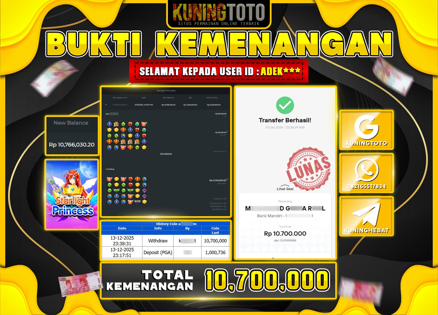 Bukti JackPot Slot Member KUNINGTOTO 13 Desember 2025 Slot Starlight Princess