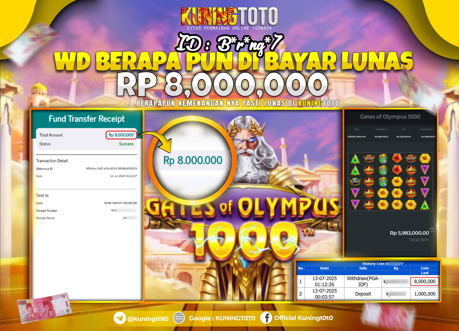 Bukti JackPot Slot Member KUNINGTOTO 13 Juli 2025 Slot Gates of Olympus 1000
