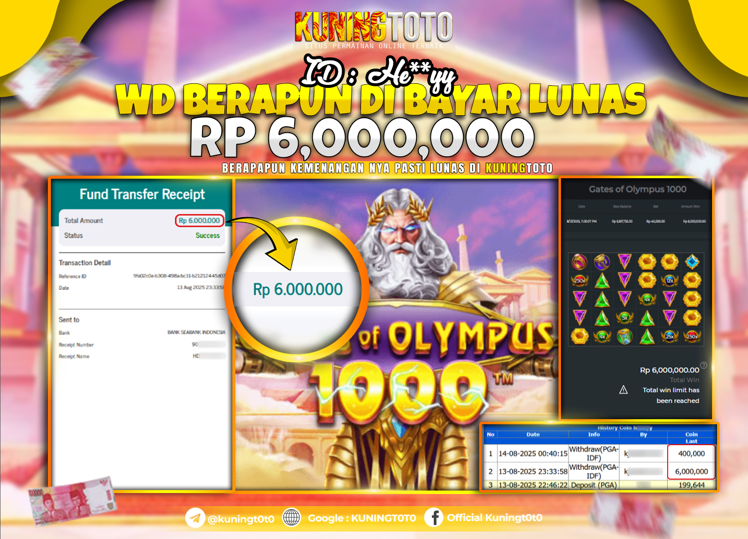 Bukti JackPot Slot Member KUNINGTOTO 14 Agustus 2025 Slot Gates of Olympus 1000