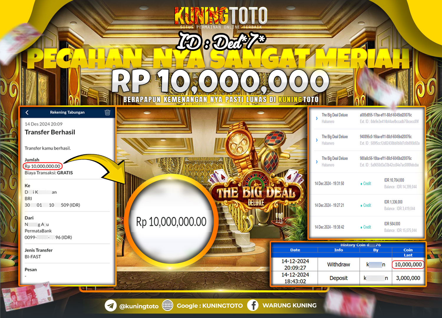Bukti JackPot Slot Member KUNINGTOTO 14 Dec 2024 Slot The Big Deal Deluxe