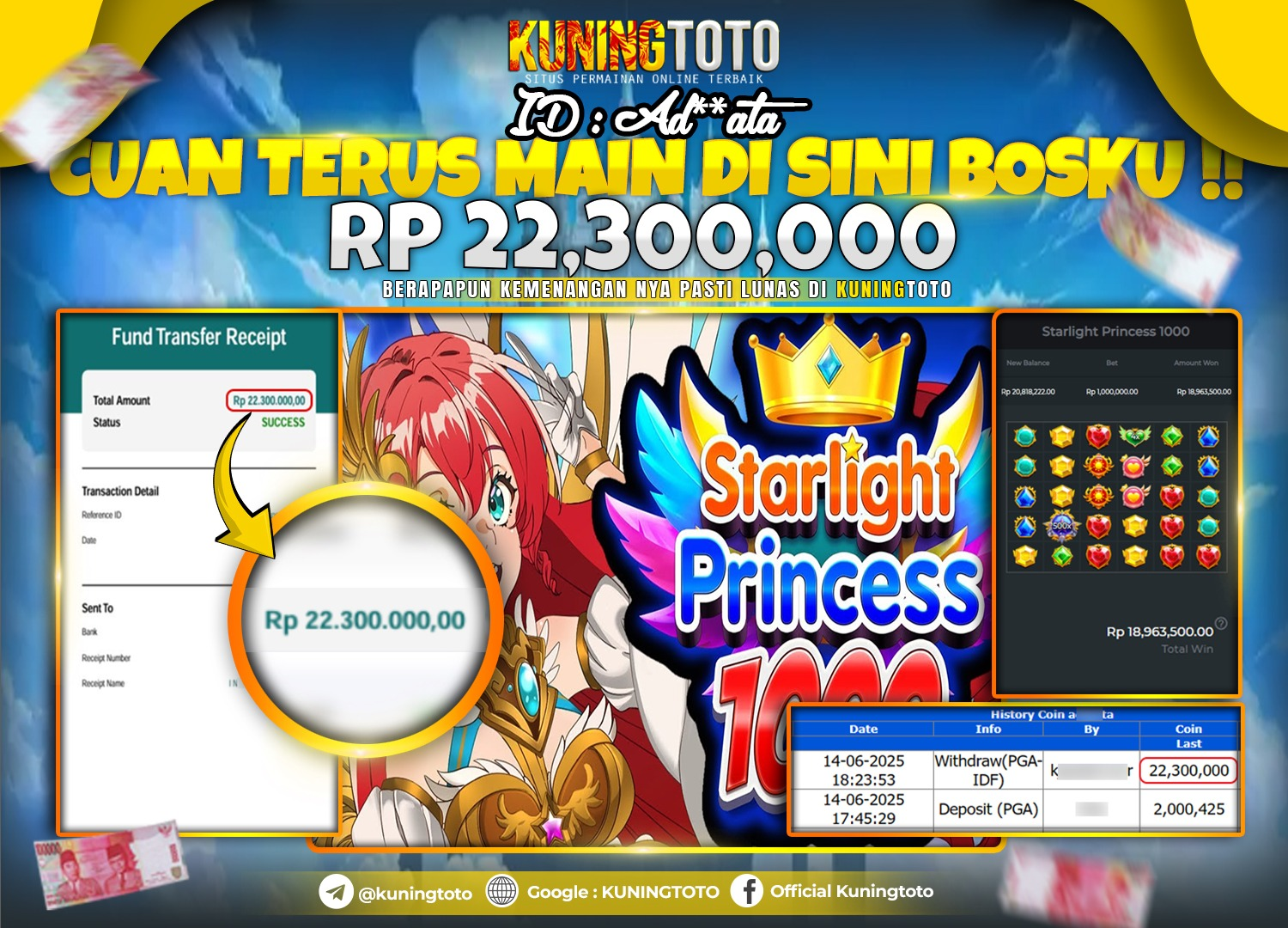 Bukti Kemenangan Slot KuningToto 14 Juni 2025 Slot Starlight Princess 1000