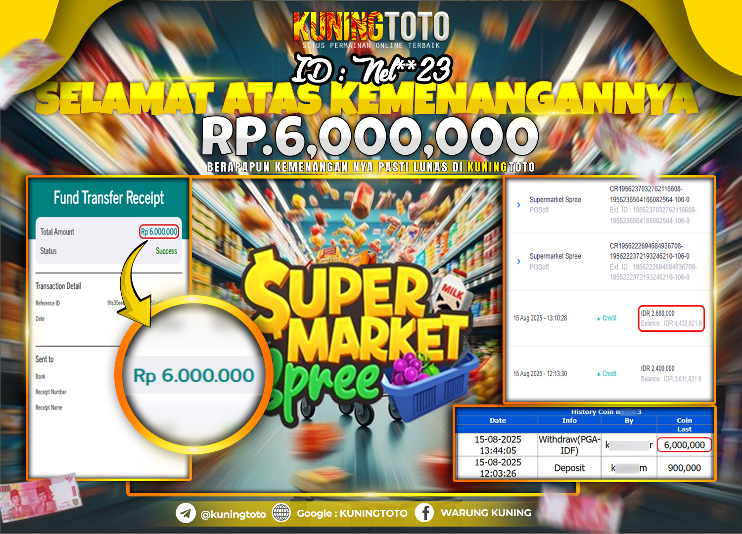 Bukti JackPot Slot Member KUNINGTOTO 15 Agustus 2025 Slot Supermarket Spree