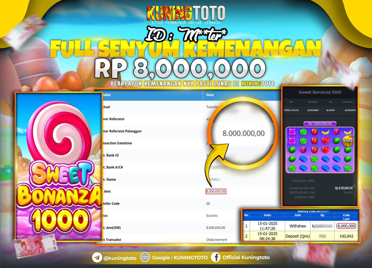 Bukti JackPot Slot Member KUNINGTOTO 15 Jan 2025 Slot Sweet Bonanza 1000
