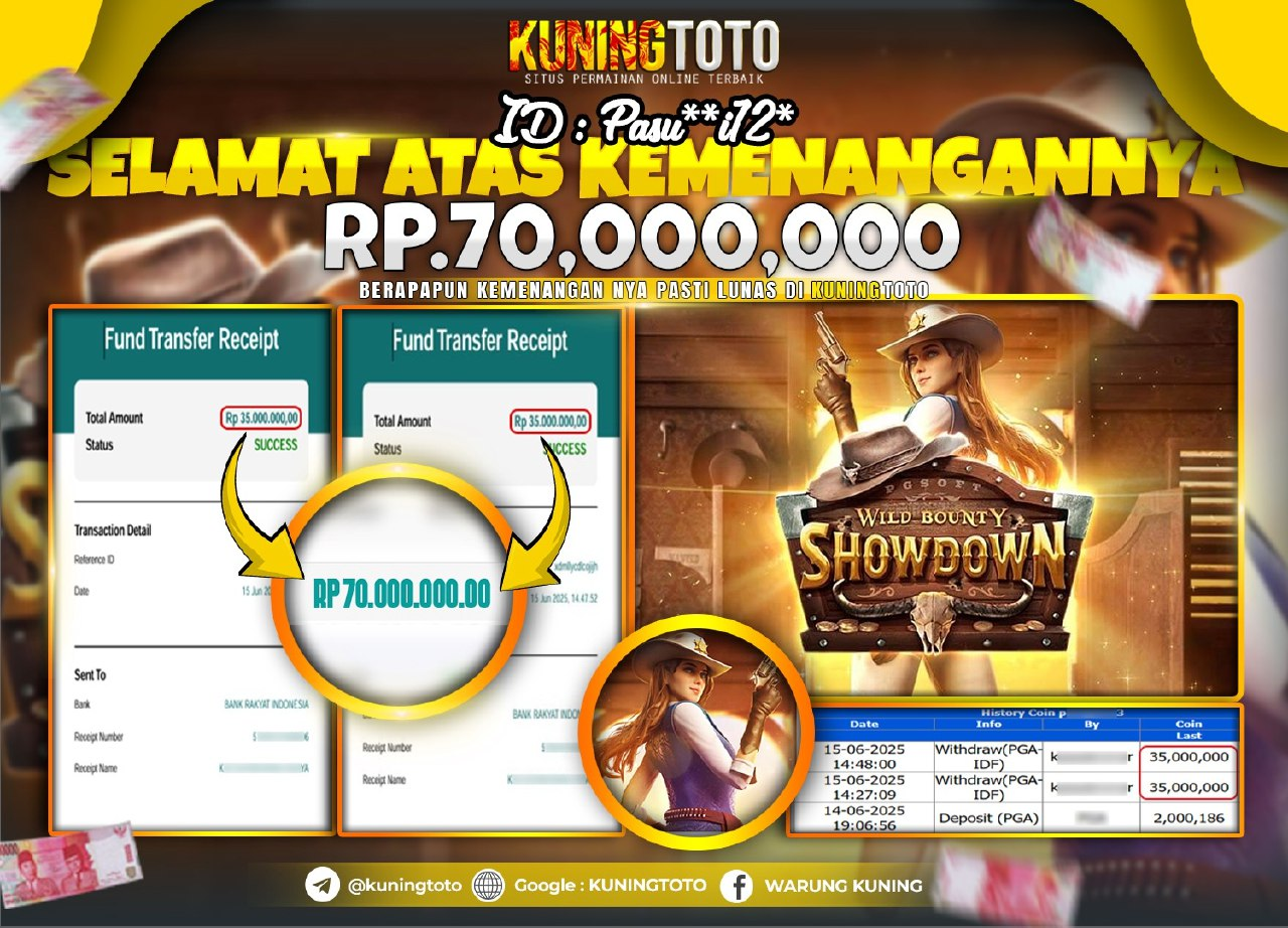 Bukti JackPot Slot Member KUNINGTOTO 15 Juni 2025 Slot Wild Bounty Showdown