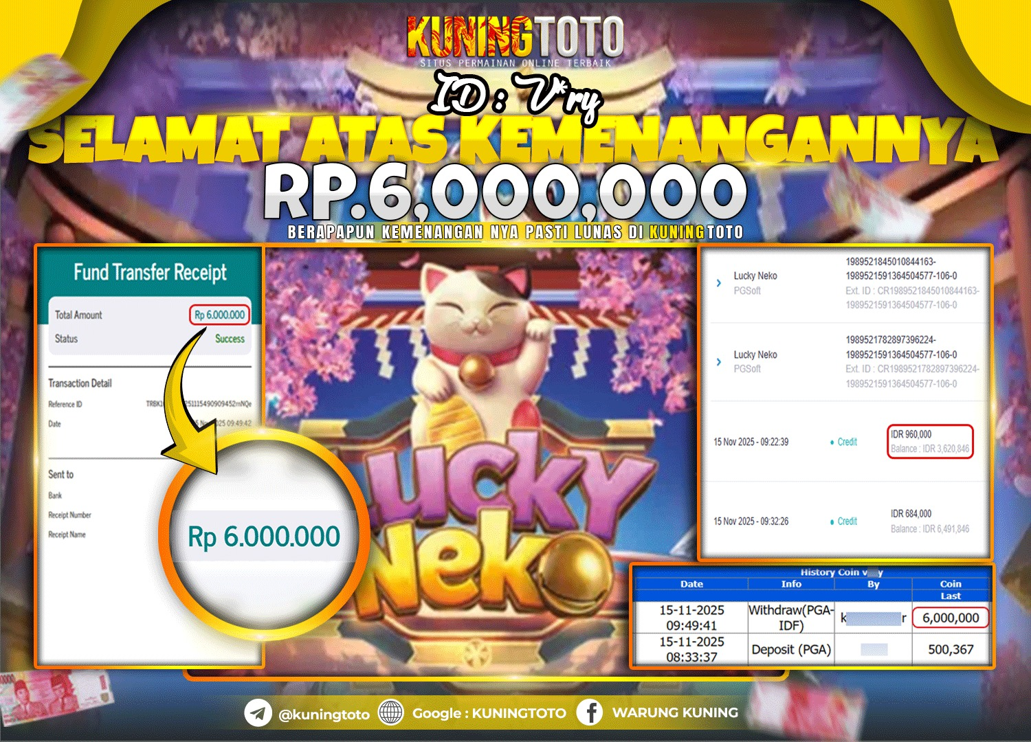 Bukti JackPot Slot Member KUNINGTOTO 15 November 2025 Slot Lucky Neko