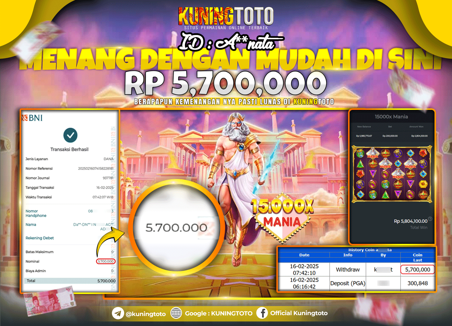 Bukti JackPot Slot Member KUNINGTOTO 16 February 2025 Slot 15.000x Mania