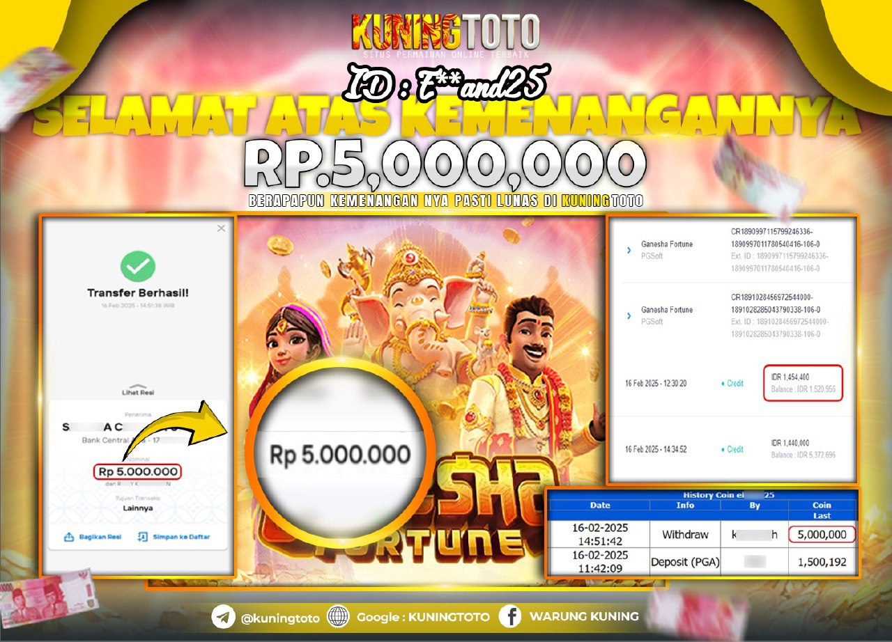 Bukti Kemenangan Slot KuningToto 16 February 2025 Slot Ganesha Fortune