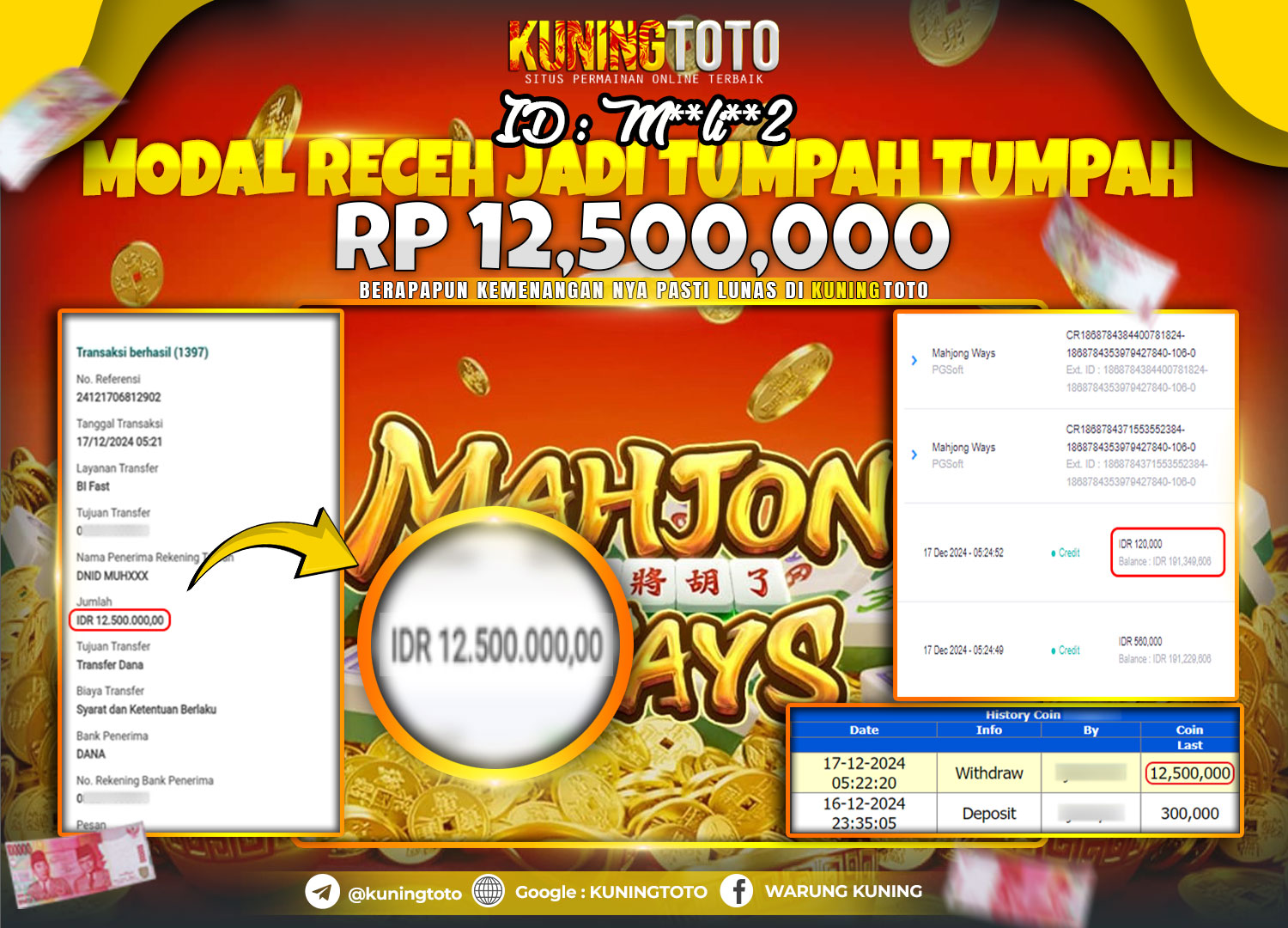 Bukti Kemenangan Slot KuningToto 17 Dec 2024 Mahjong Ways