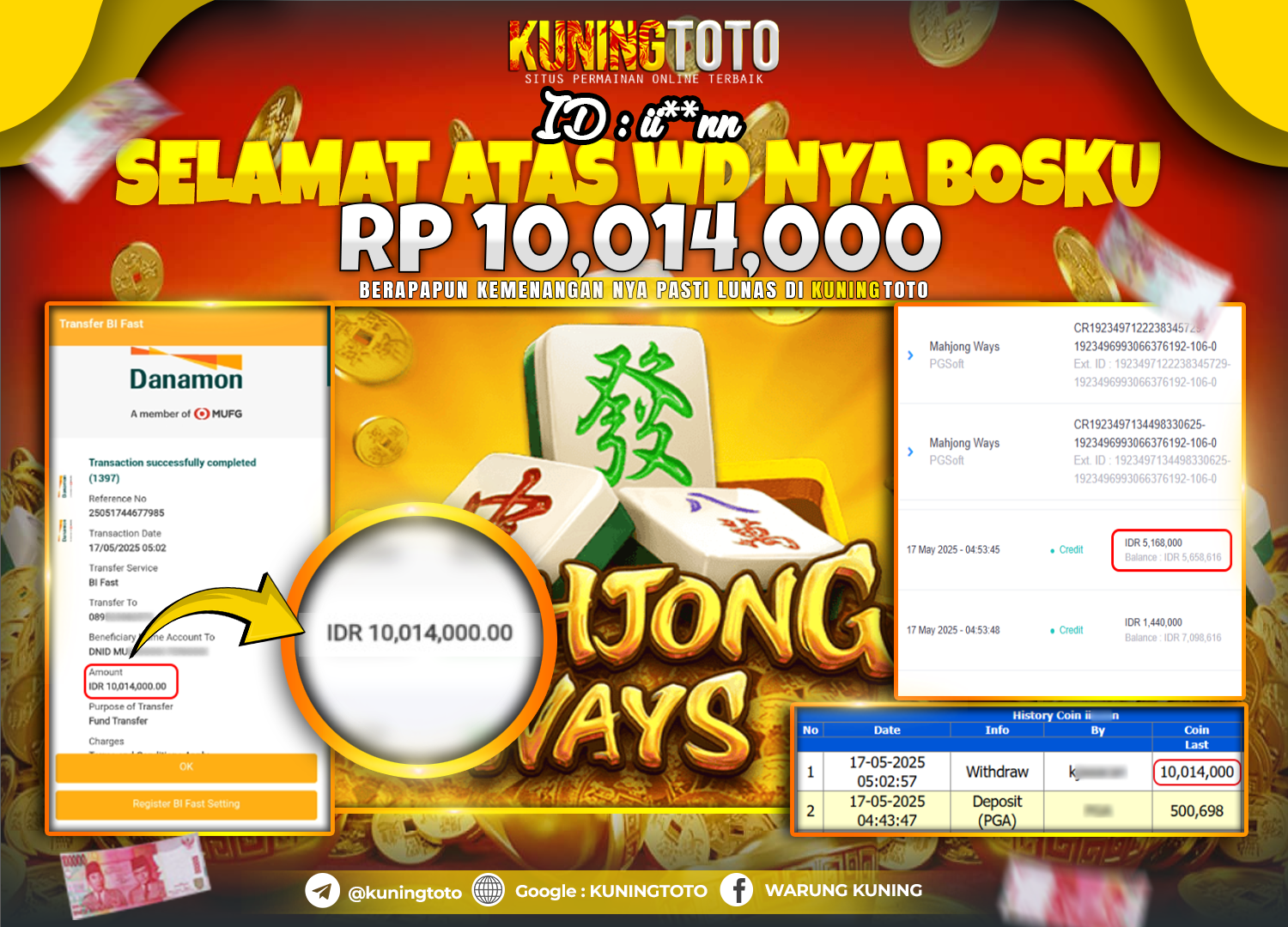 Bukti JackPot Slot Member KUNINGTOTO 17 Mei 2025 Slot Mahjong Ways