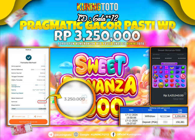 Bukti Kemenangan Slot KuningToto 17 Nov 2024 Sweet Bonanza 1000