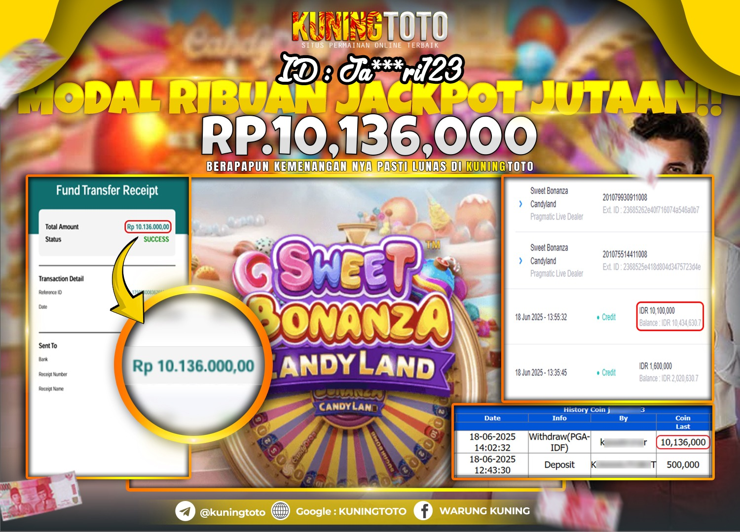 Bukti JackPot Slot Member KUNINGTOTO 18 Juni 2025 Slot Sweet Bonanza Candyland