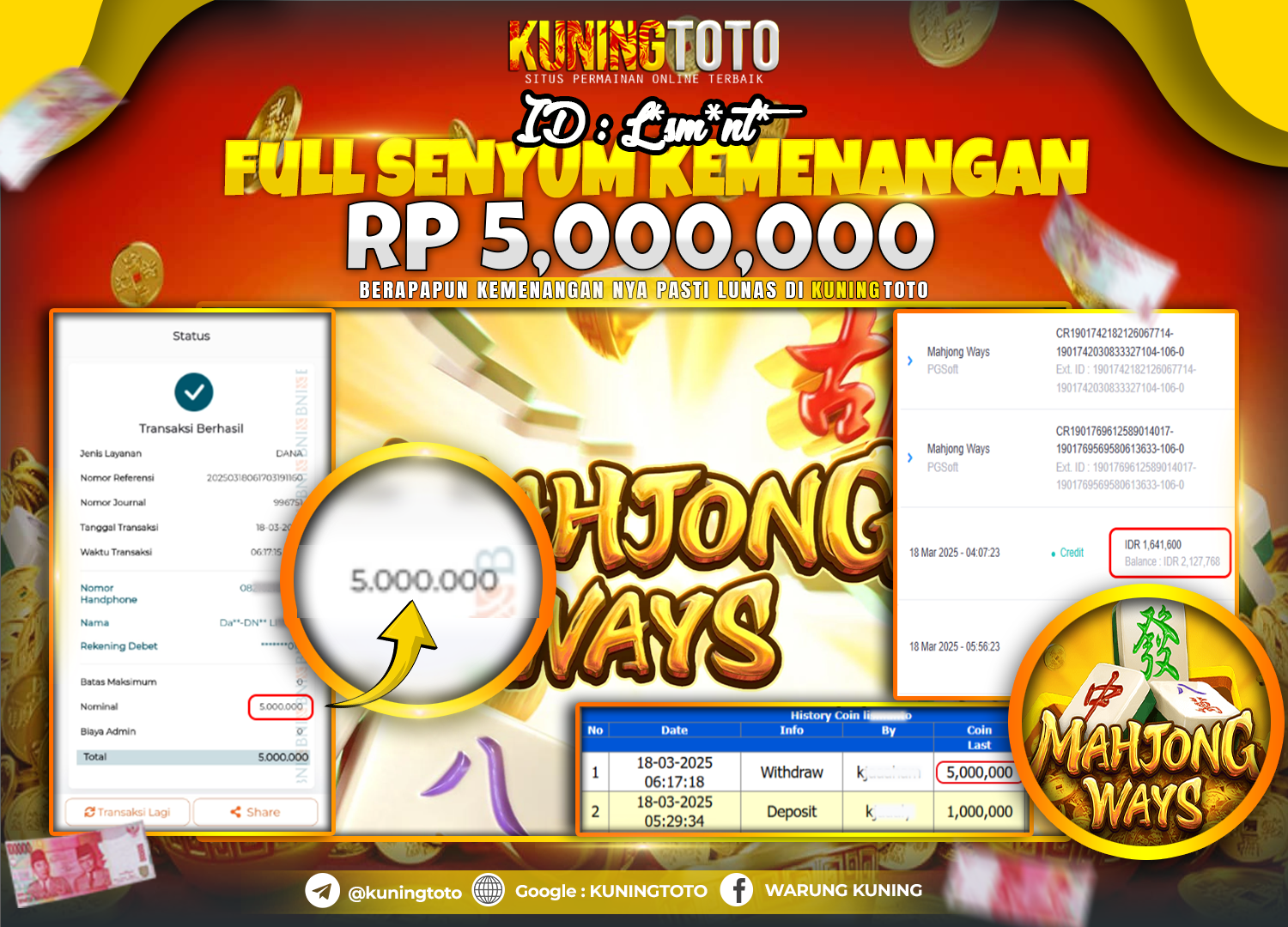Bukti JackPot Slot Member KUNINGTOTO 18 Mar 2025 Slot Mahjong Ways