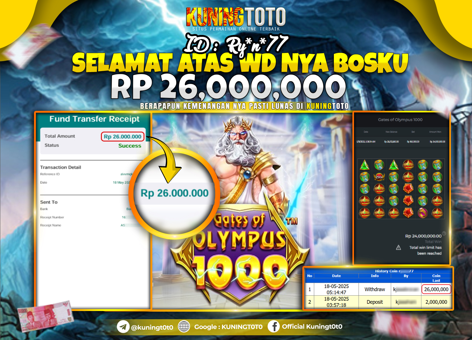 Bukti JackPot Slot Member KUNINGTOTO 18 Mei 2025 Slot Gates Of Olympus 1000