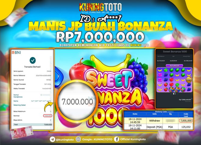 Bukti JackPot Slot Member KUNINGTOTO 18 Nov 2024 Sweet Bonanza 1000