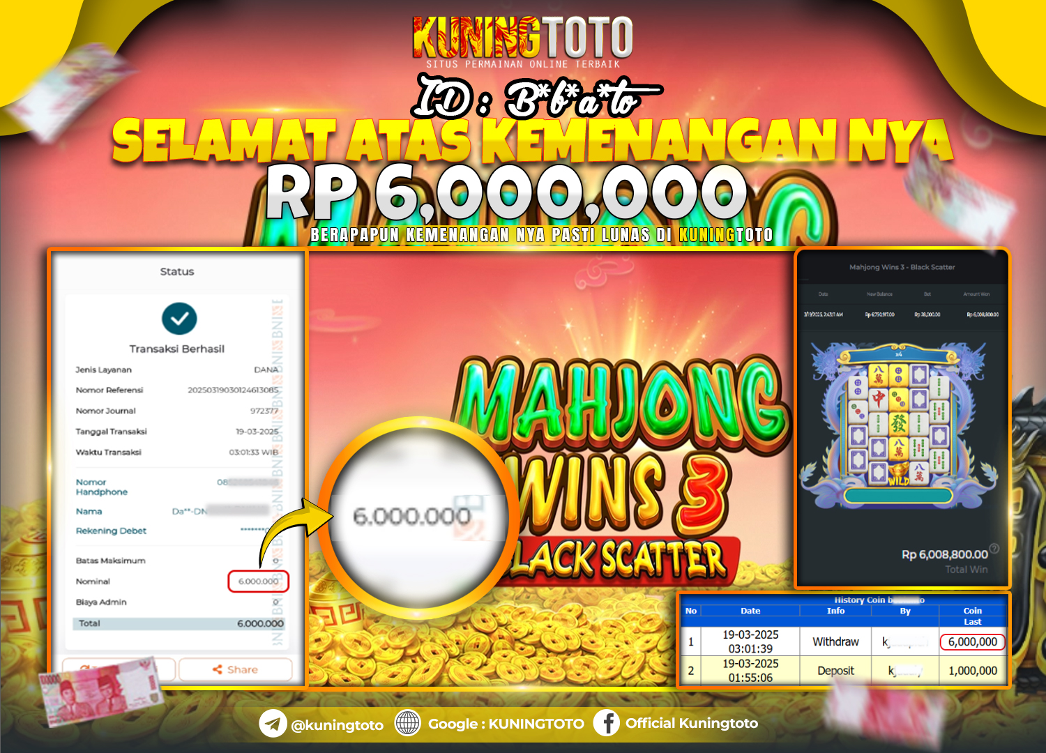 Bukti JackPot Slot Member KUNINGTOTO 19 Maret 2025 Slot Mahjong Wins 3 – Black Scatter