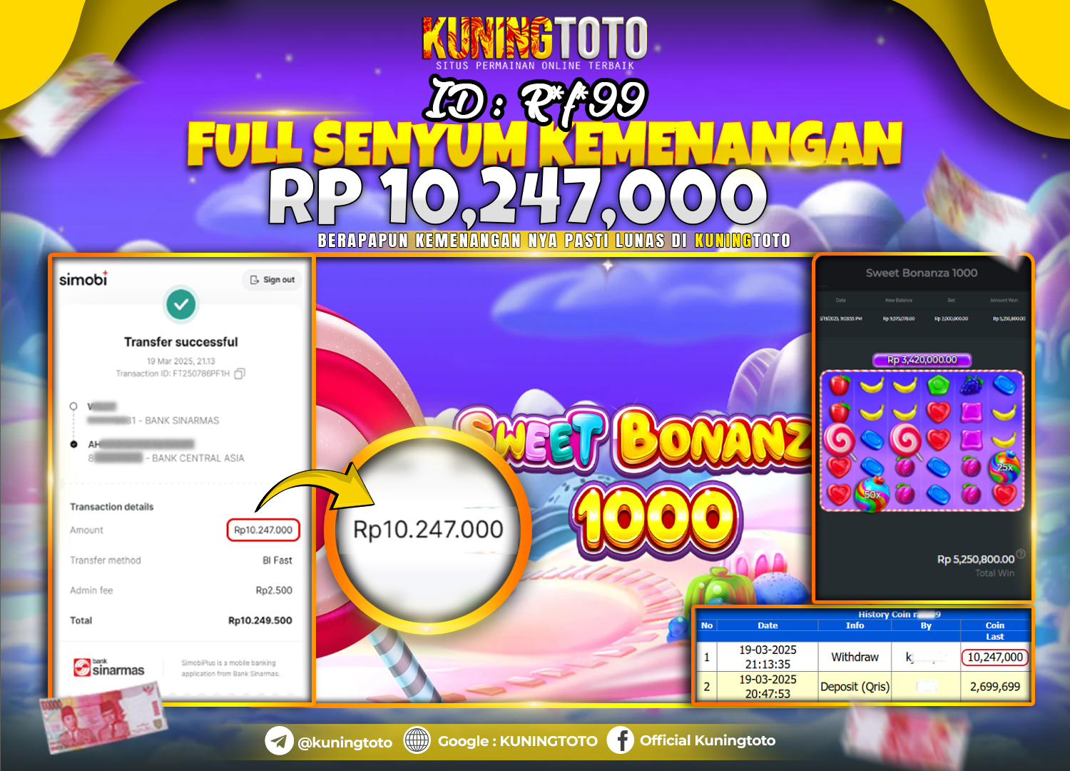 Bukti JackPot Slot Member KUNINGTOTO 19 Maret 2025 Sweet Bonanza 1000