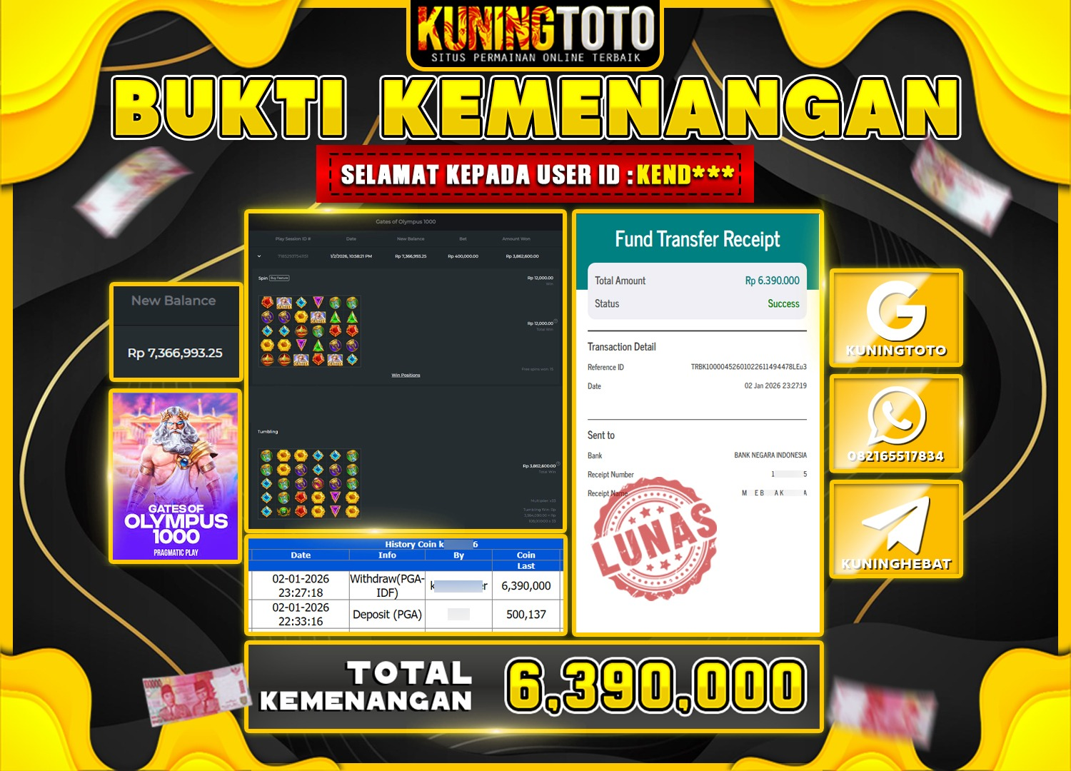 Bukti JackPot Slot Member KUNINGTOTO 2 January 2026 Gates Of Olympus 1000