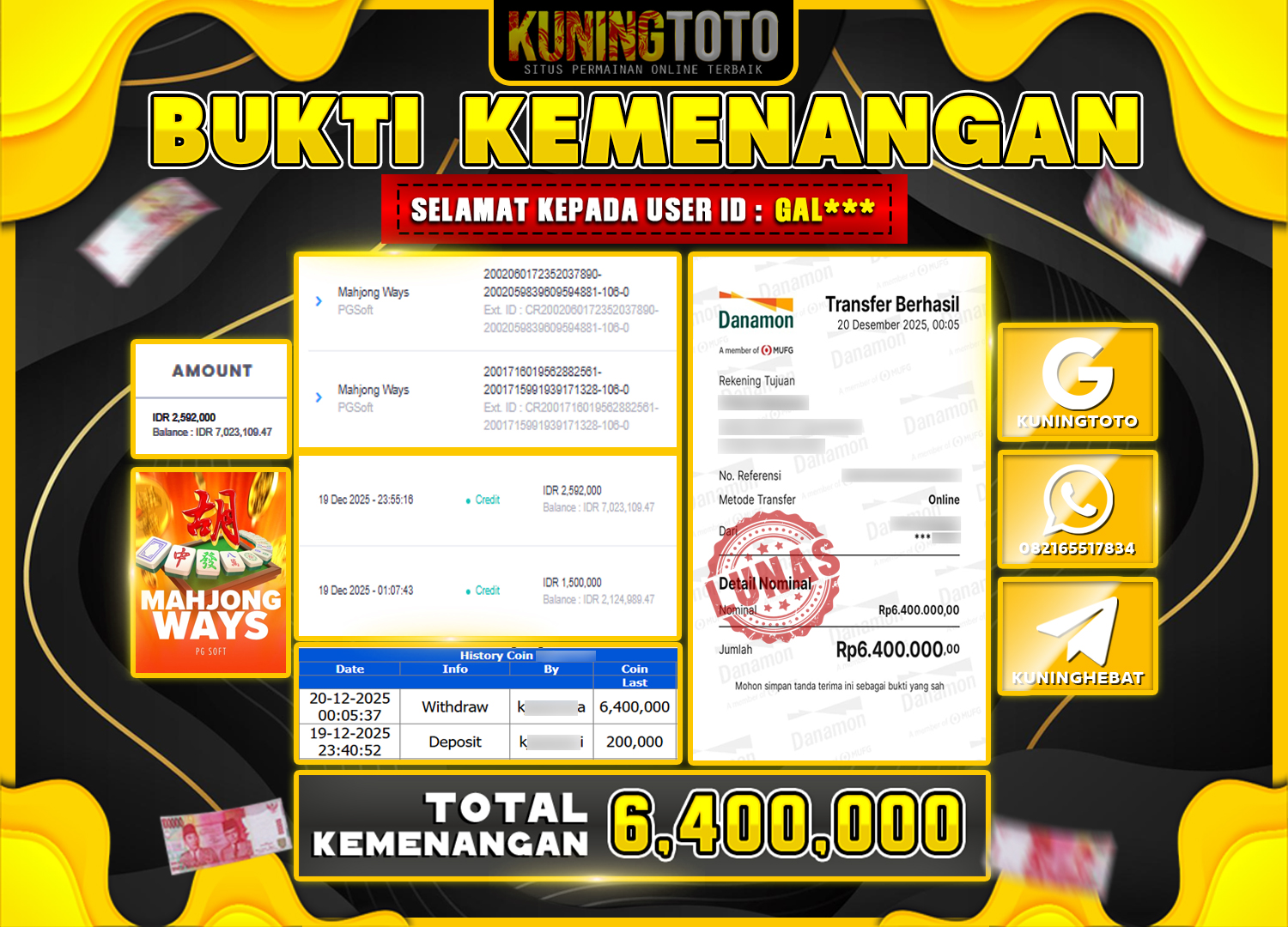 Bukti Kemenangan Slot KuningToto 20 Desember 2025 Slot Mahjong Ways