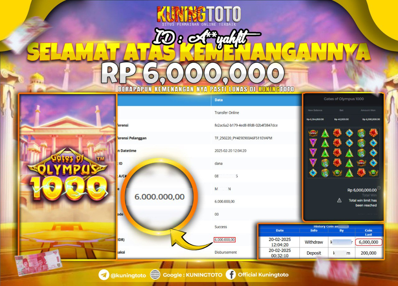 Bukti Kemenangan Slot KuningToto 20 Feb 2025 Gates Of Olympus 1000