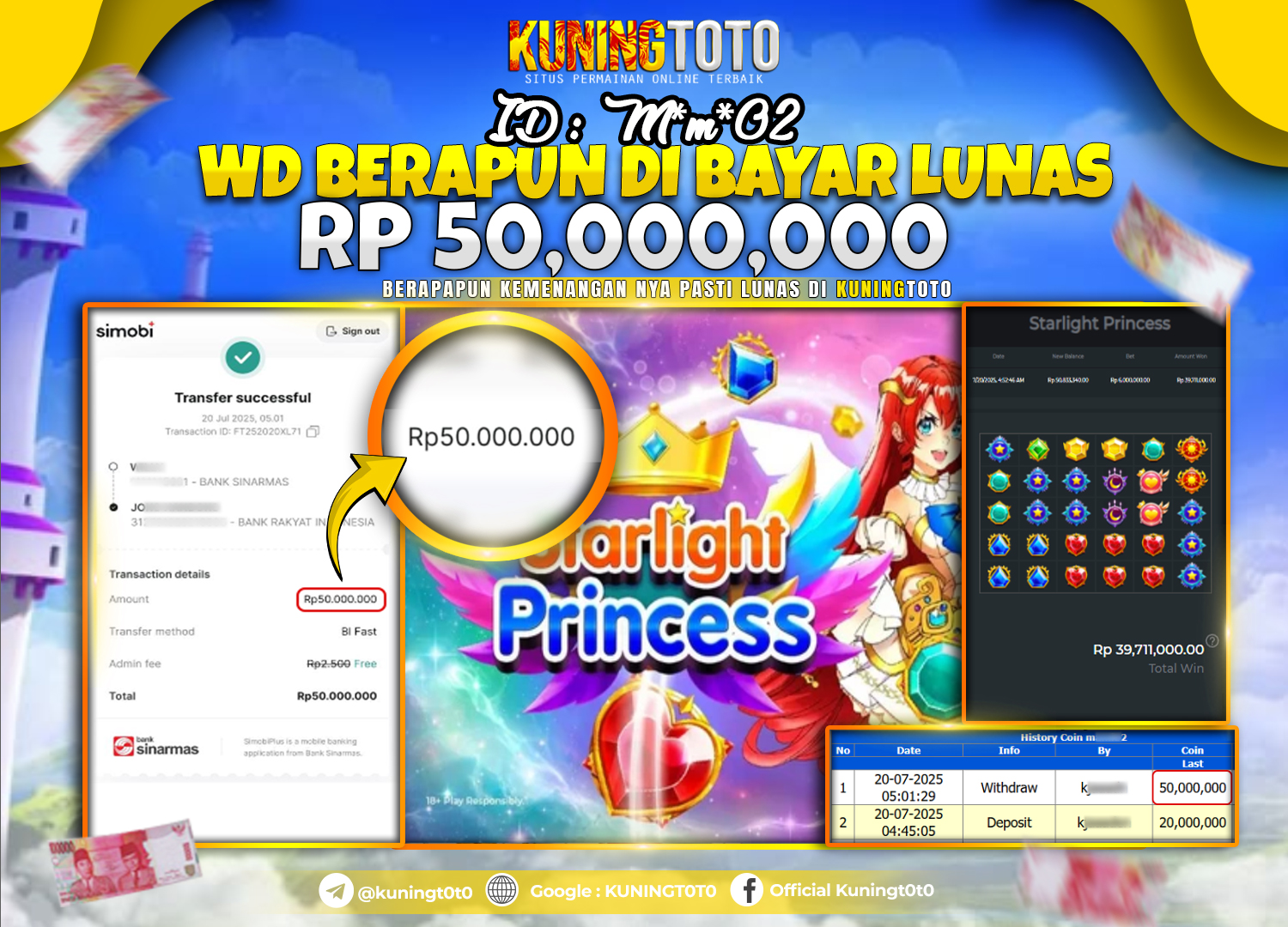 Bukti JackPot Slot Member KUNINGTOTO 20 Juli 2025 Slot Starlight Princess