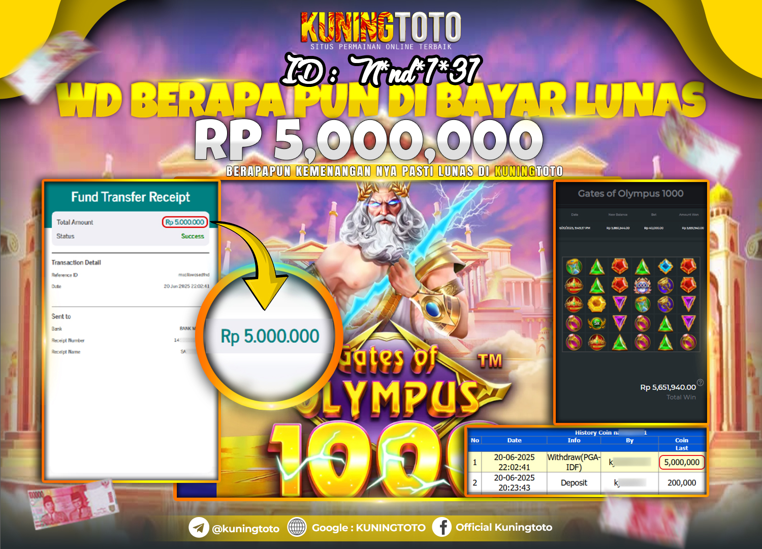 Bukti JackPot Slot Member KUNINGTOTO 20 Juni 2025 Slot Gates of Olympus 1000