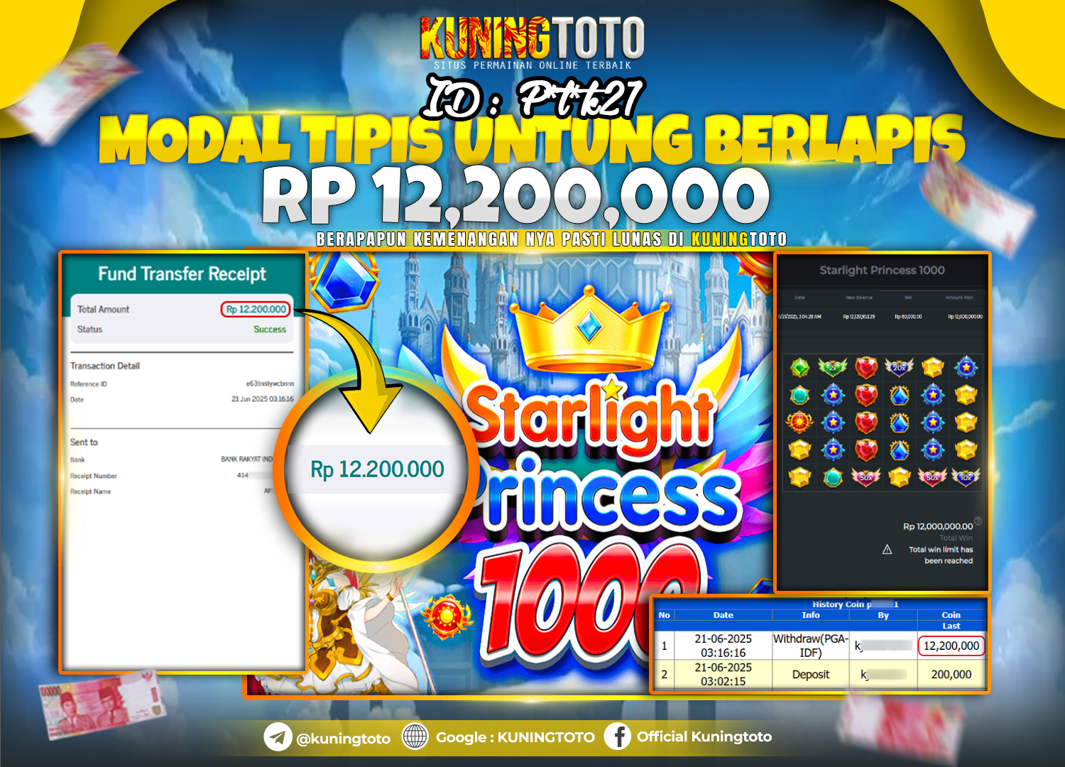Bukti JackPot Slot Member KUNINGTOTO 21 Juni 2025 Slot Starlight Princess 1000