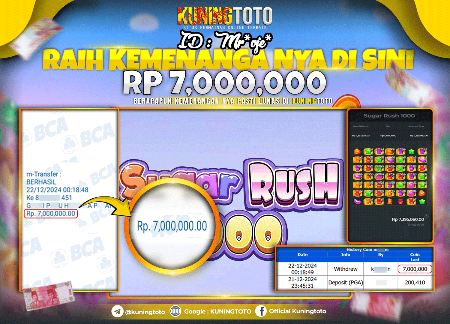 Bukti JackPot Slot Member KUNINGTOTO 22 Dec 2024 Slot Sugar Rush 1000