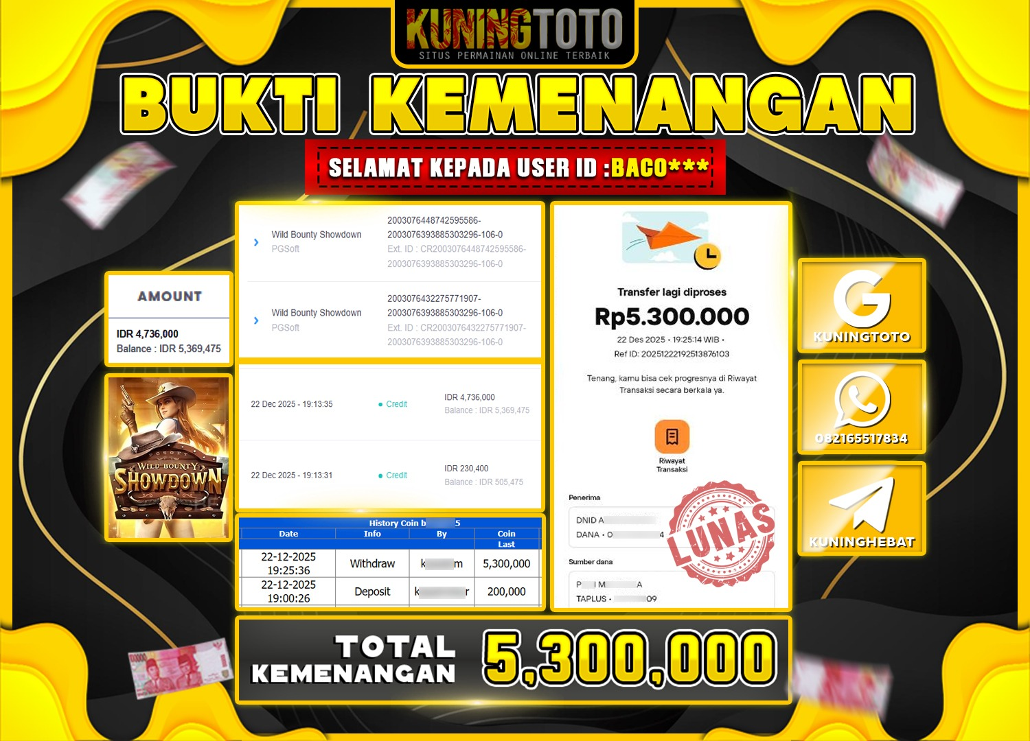 Bukti JackPot Slot Member KUNINGTOTO 22 Desember 2025 Slot Wild Bounty Showdown
