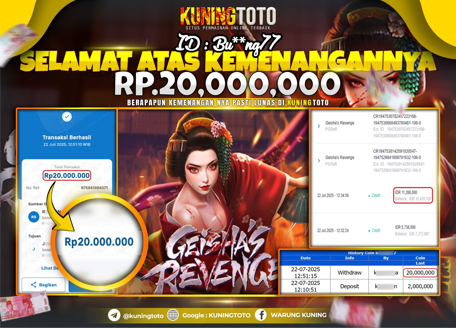 Bukti JackPot Slot Member KUNINGTOTO 22 Juli 2025 Slot Geisha’s Revenge