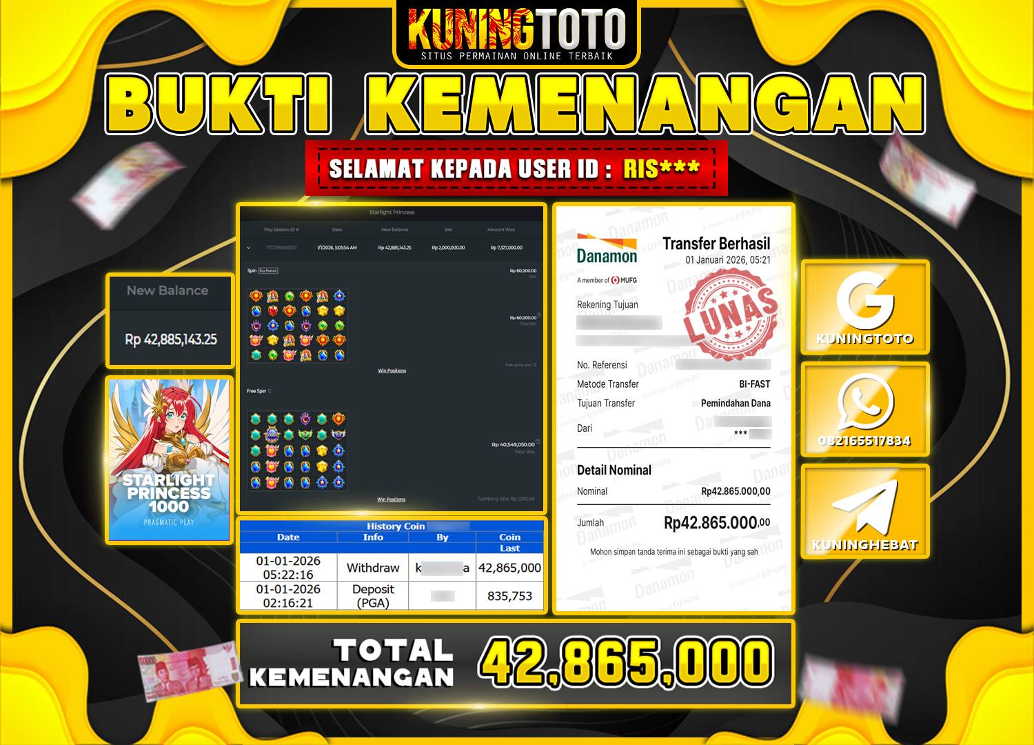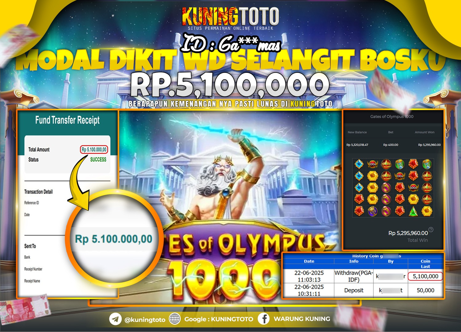 Bukti JackPot Slot Member KUNINGTOTO 22 Juni 2025 Slot Gates of Olympus 1000