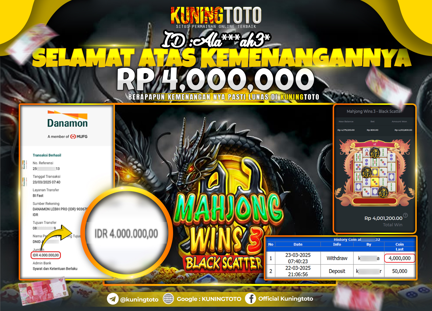 Bukti Kemenangan Slot KuningToto 23 Maret 2025 Mahjong Wins 3 – Black Scatter