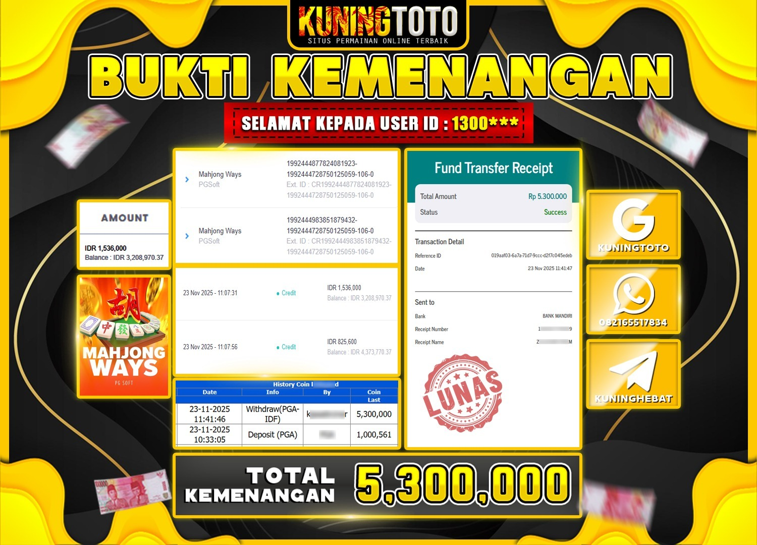Bukti JackPot Slot Member KUNINGTOTO 23 November 2025 Slot Mahjong Ways