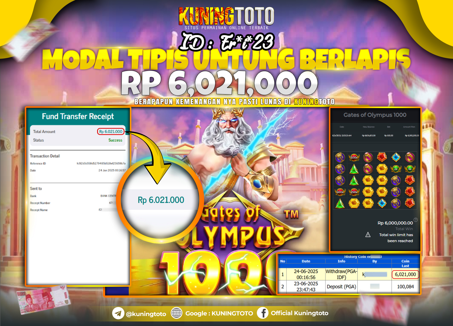 Bukti JackPot Slot Member KUNINGTOTO 24 Juni 2025 Slot Gates of Olympus 1000